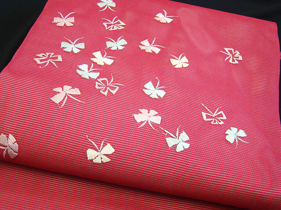 きものしらゆり 夏帯 西陣織 絽 赤色 蝶 なごや帯 正絹 仕立て上り S654 收藏
