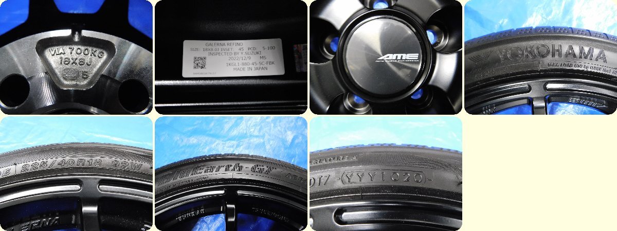s_ タイヤホイール4本セット 225/40R18 ヨコハマ AE51 18インチ GALARIA REFINO 8J ×18 +45 100/5H プリウス、カローラツーリング、86、BRZ等 昭和店