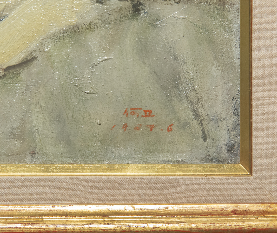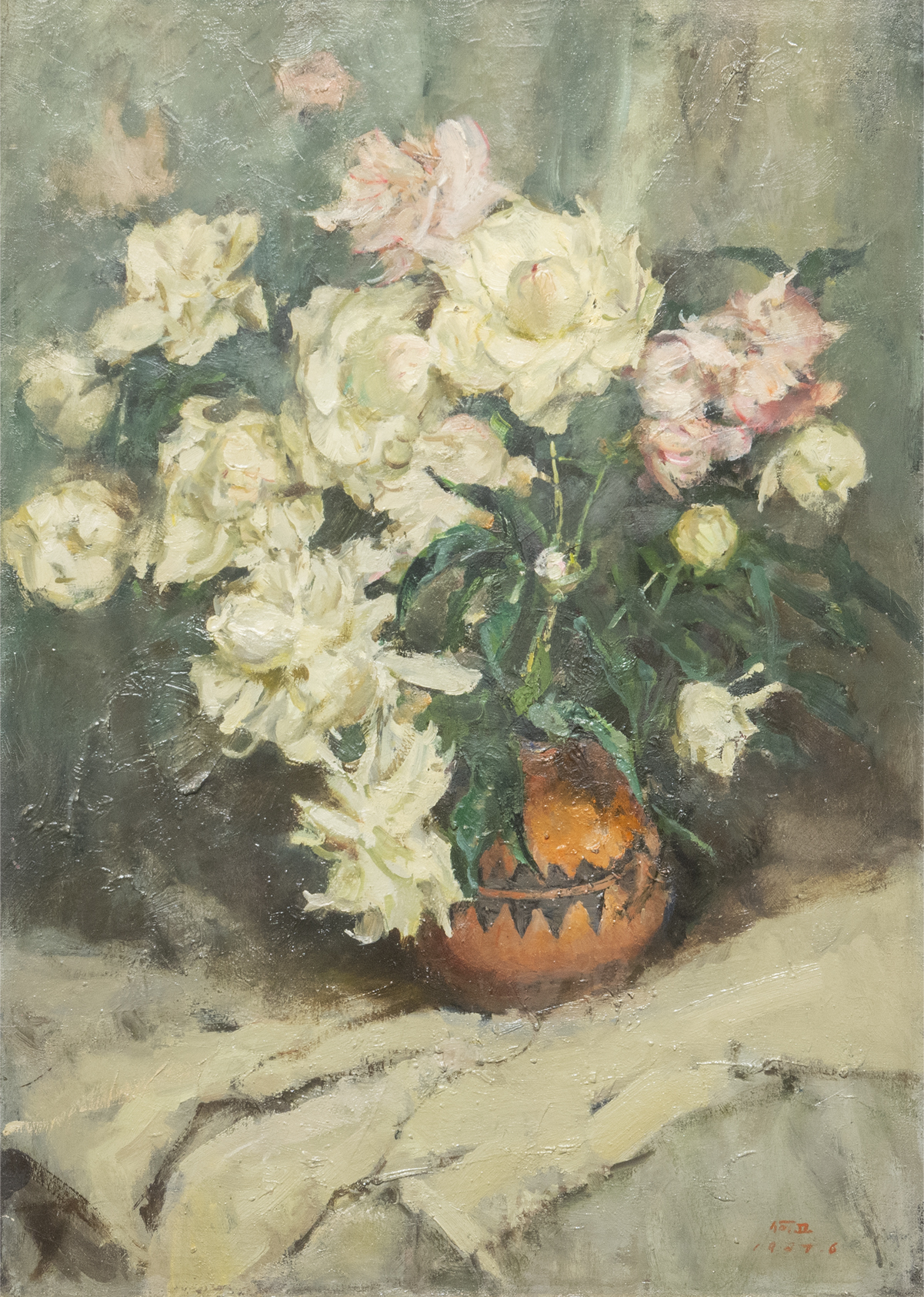 何衛 1987年作 芍葯 油画 額装 真作保証 何卫 中国 近現代絵画 現代アート 收藏
