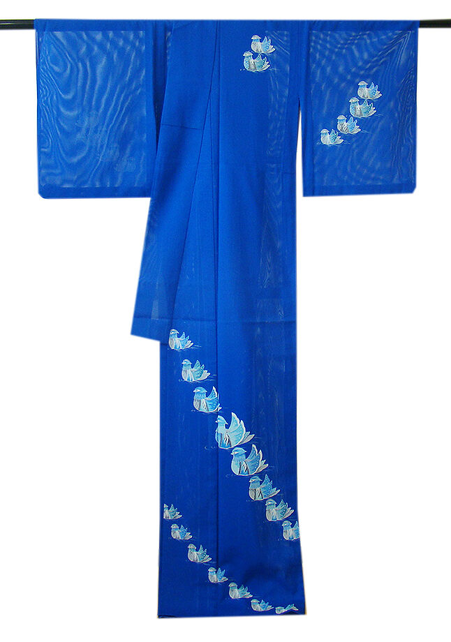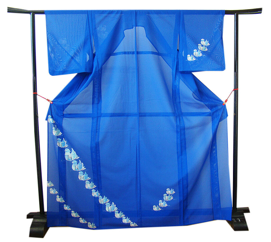 | 商品説明 | こちらのお品は夏物でございますので、7月~8月にお召頂ければと思います。 「絽」と言えば、紗と双璧を成す夏のお着物の生地で、 その最大の魅力は絶妙の透かし加減でございます。 清涼感溢れる地の風を通すしなやかさは夏に着物を着るという贅沢を 快適に愉しませてくれる事でしょう。 着物には、大きく分けて「袷(あわせ)の着物」と「単衣(ひとえ)の着物」と「夏着物」があります。 反物(表地)を着物に仕立てるときに、裏地類をつけるものを袷の着物、 つけないものを単衣の着物と呼び、胴裏や八掛といった裏地がつかない一枚ものの着物です。 また裏地がないため、座る時などにヒップのラインが目立たないよう、 居敷当て(いしきあて)の生地をつけることもあります。 居敷当ては付いておりません。 しなやかな手触りの滑らかなさらっとした肌触りは絹と間違ってしまいそうな「絽」の 洗える高級「ポリエステル」の生地で涼やかな風合いを醸しております。 瑠璃色地に水鳥柄の染柄が存在感溢れる華やかな着物姿を演出しております。 帯は「ポリエステル」の袋帯(全通柄)でしなやかで扱い易く〆易く、 白色地に赤色の亀甲、青海波柄が小粋な帯姿を奏でております。 帯〆は「正絹」の平組、ピンク色地の組紐となっております。 |