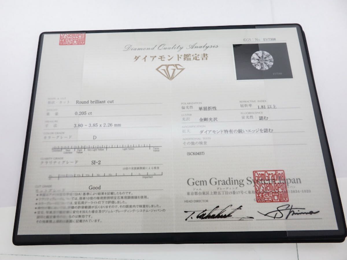 鑑定書はGem Grading System Japan(GGS)発行の鑑定書付き。