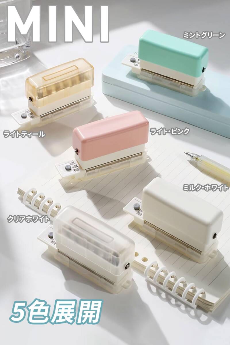 A4/B5/A5ペーパーに対応可能 サイズ:9.3*5*2.8cm 材質:PP+炭素鋼 穴数:6穴 穿孔枚数:2枚 対応した紙タイプ:A5/B5/A4 重さ:約70g 穴径:5.5mm 奥行き:7mm 穴間隔:9.5mm