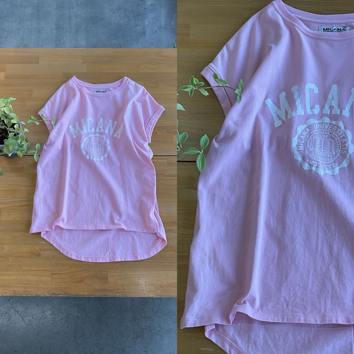 MICA & DEAL マイカ&ディール 袖ロールアッププリントコットンTシャツ エイジロゴ前後差スリットトップスカットソー 綿100% ピンク色系 q 收藏