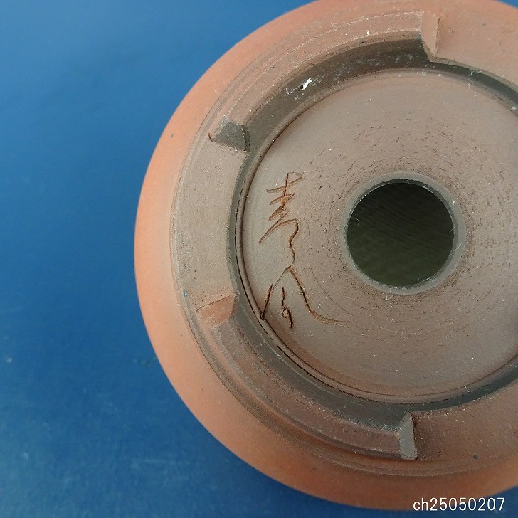 【中古】 盆栽鉢 青風 小鉢 長辺 約 8.5cm 丸鉢 下帯 泥鉢 現品 中古鉢 收藏