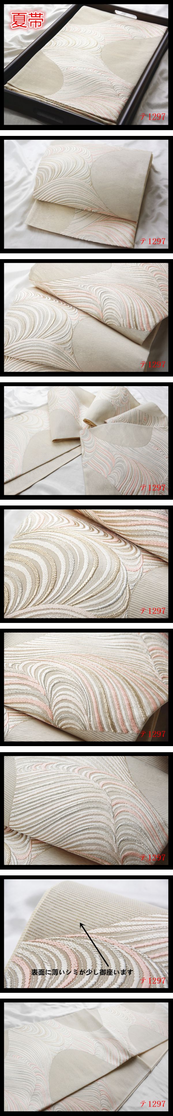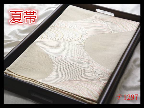 蔵【テ1297】西陣逸品 夏帯 絽 波紋 象牙色 透かし 正絹純金糸六通高級美術袋帯 新品同様 ◇検◇簪着物名古屋帯和装小物帯締め 收藏