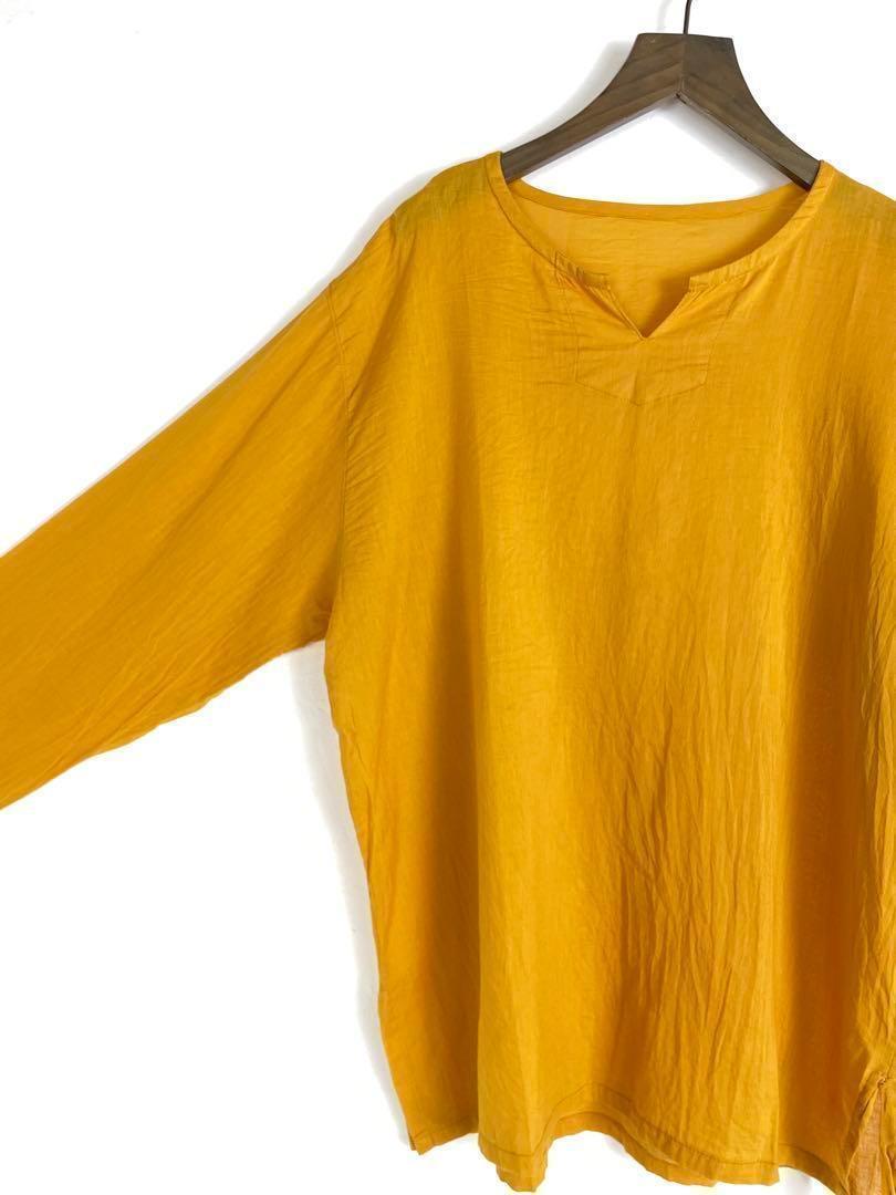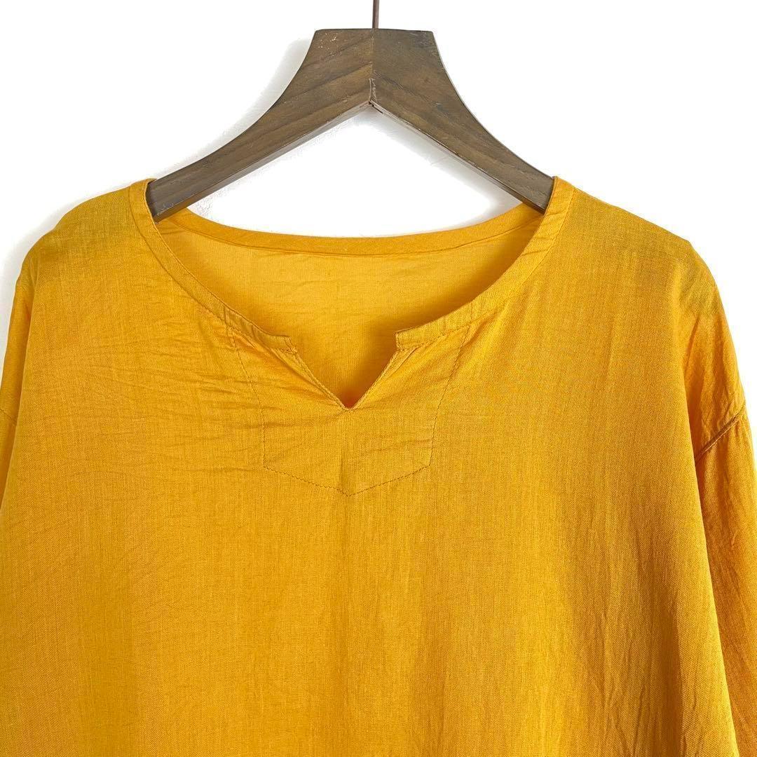 【新品】クルタ シアーコットン 半袖 無地マスタード Y86 收藏