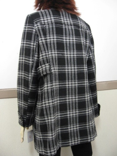 【KCM】f-box-2★未使用品★レディース チェック柄 スタンドカラーコート ブラック系 サイズ 13AR 收藏