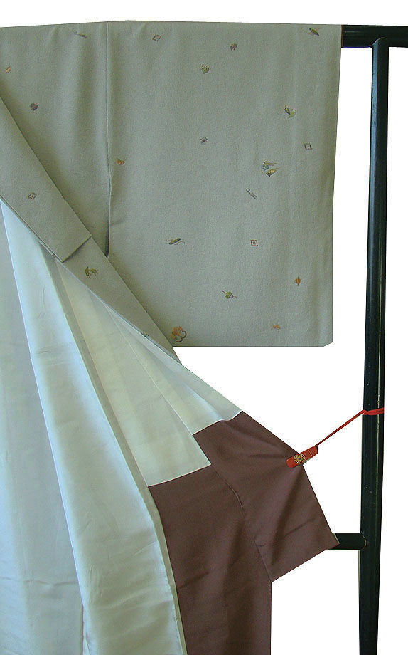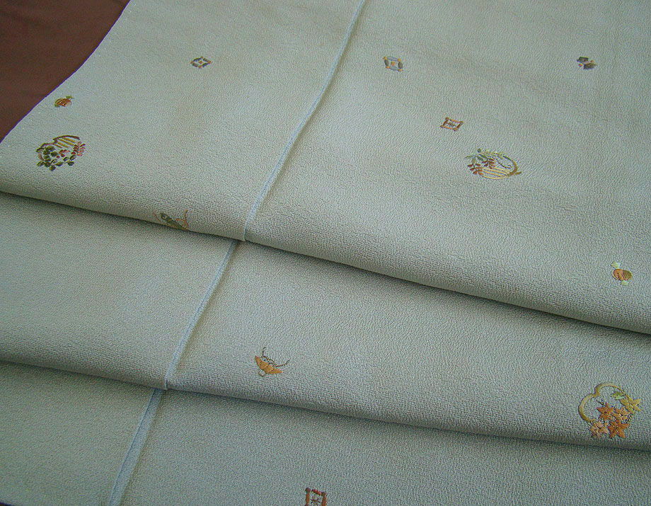 項 目 | ★美品 極上縮緬地 お洒落な刺繍の小紋(正絹)仕立上り<KK1040>★ | ||||||||||||