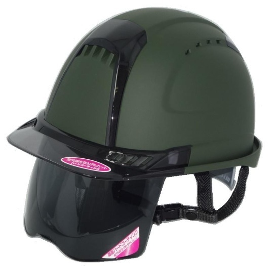 トーヨーセフティー No.391F-S-S カーキグリーン(マット塗装) スモークシールド付き ヴェンティープラス GranGearコラボ ヘルメット TOYO