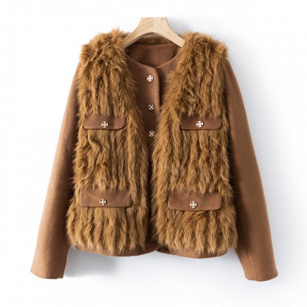 半額!新品暖かいレディースフィック毛皮ベストコートセットチョコXL 收藏