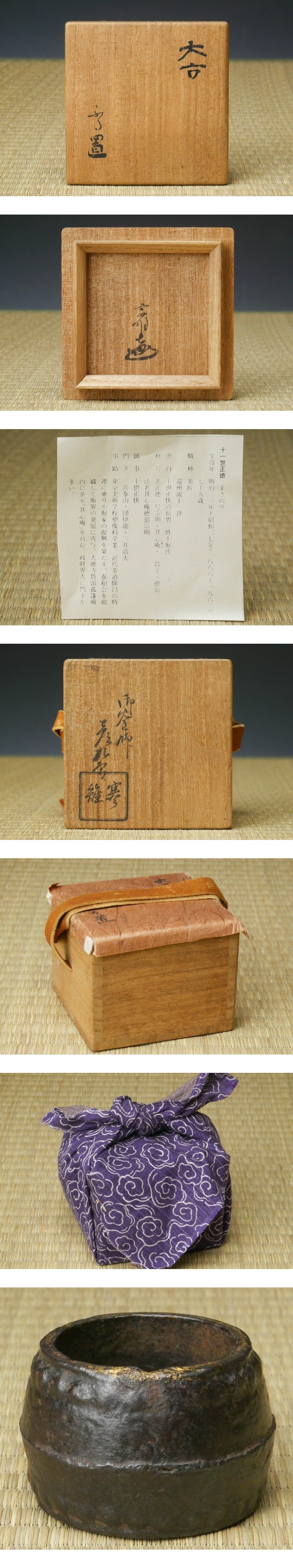 【 幸 古寺の蔵 】『十二代宮崎寒雉』造 鉄 太鼓形 蓋置 遠州流 十一代家元 小堀宗明箱 共箱◆当店保証 茶道具『茶人の言葉』 收藏