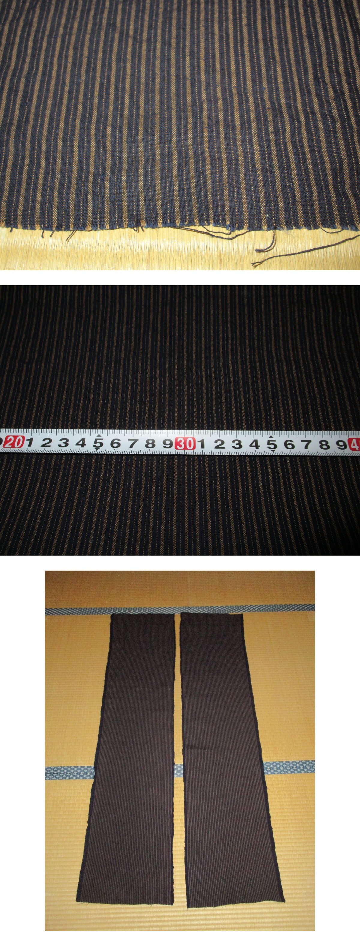 【昔古布】大正期 無傷で 美品 厚手の 藍染木綿 細縞 2幅 (長合計286) リメイク材料 收藏