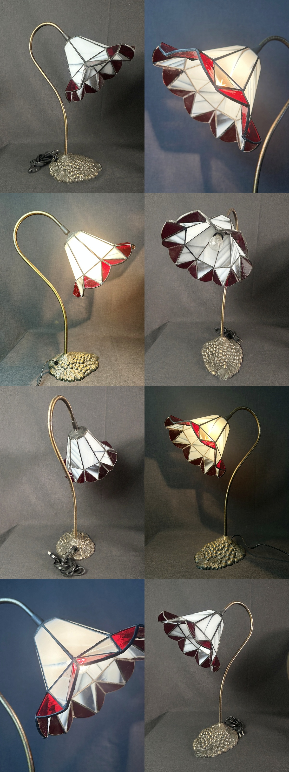 グースネック ステンドグラスランプ 葡萄型台座◇アンティーク/ヨーロッパ/インテリア/テーブルランプ/スタンドライト/照明/ガラス 收藏