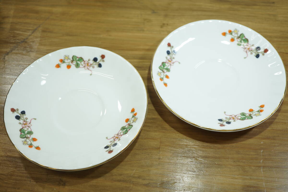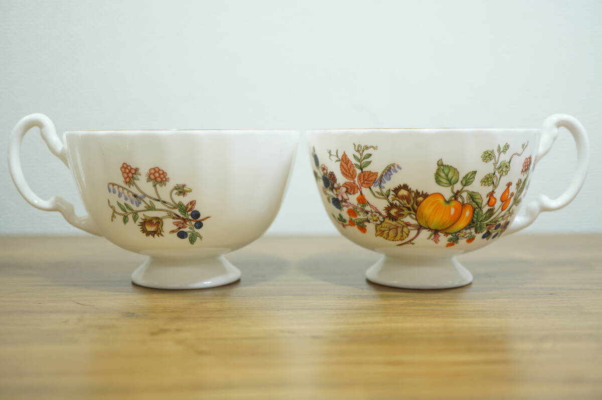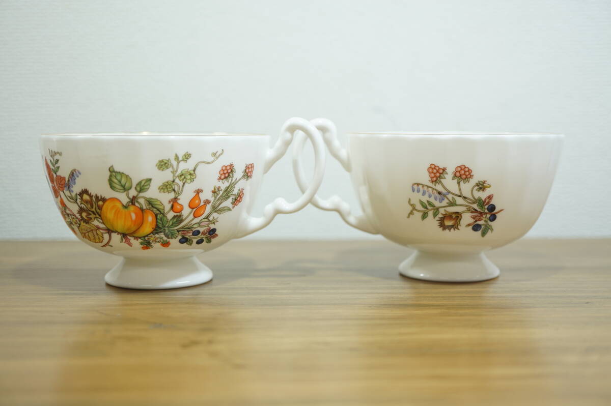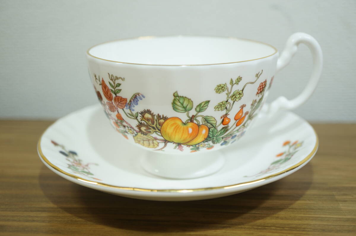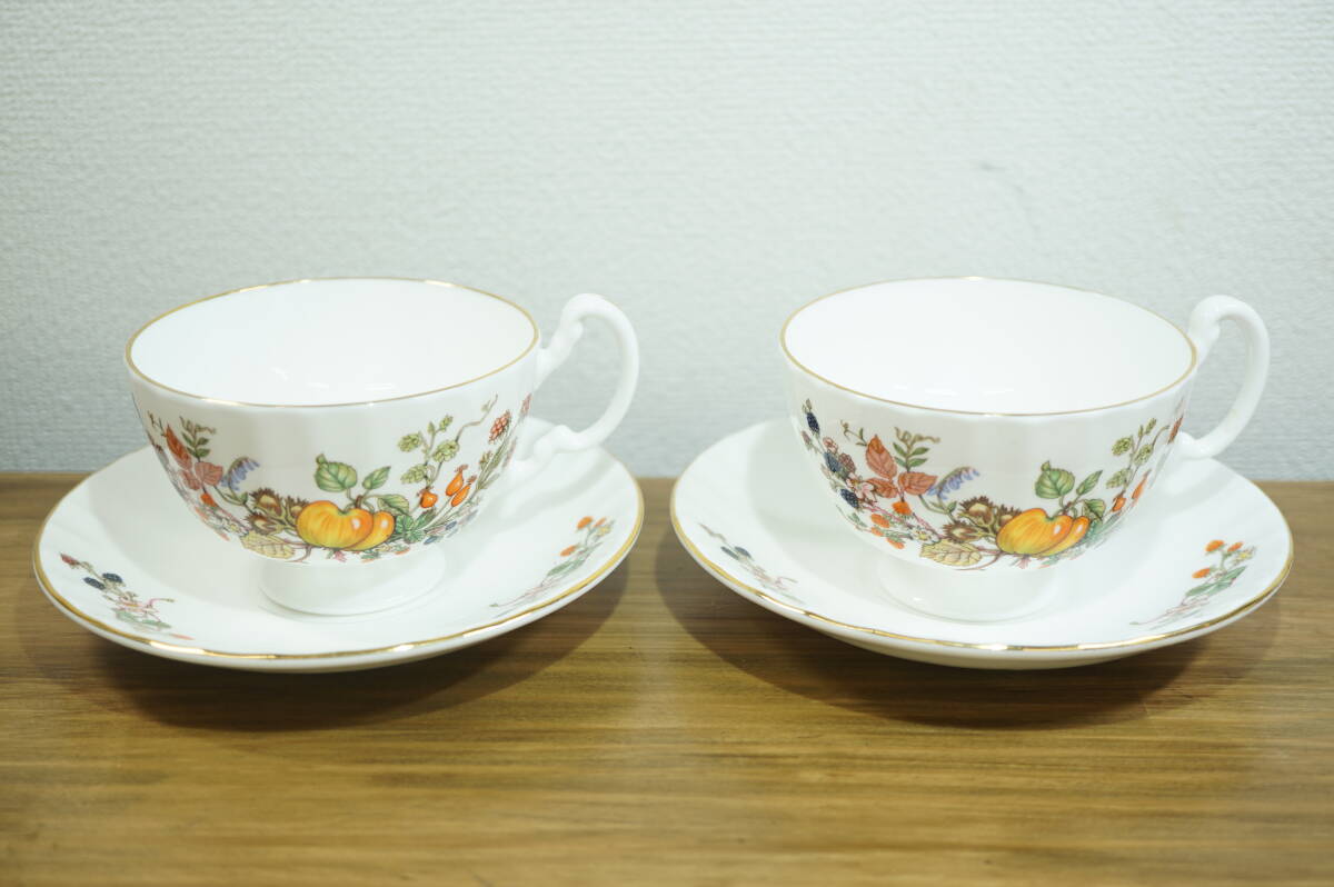 美品 AYNSLEY エインズレイ カップ&ソーサー 2客セット オーバン ボーンチャイナ 花柄 フルーツ柄 收藏