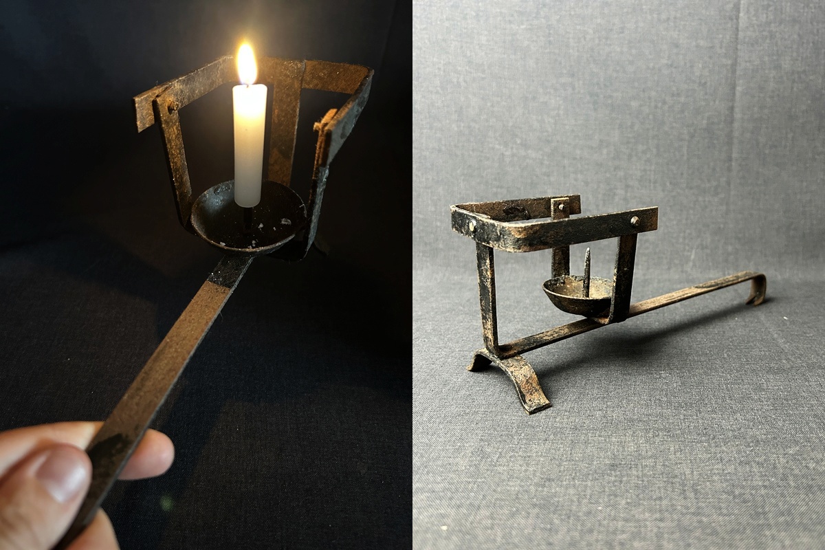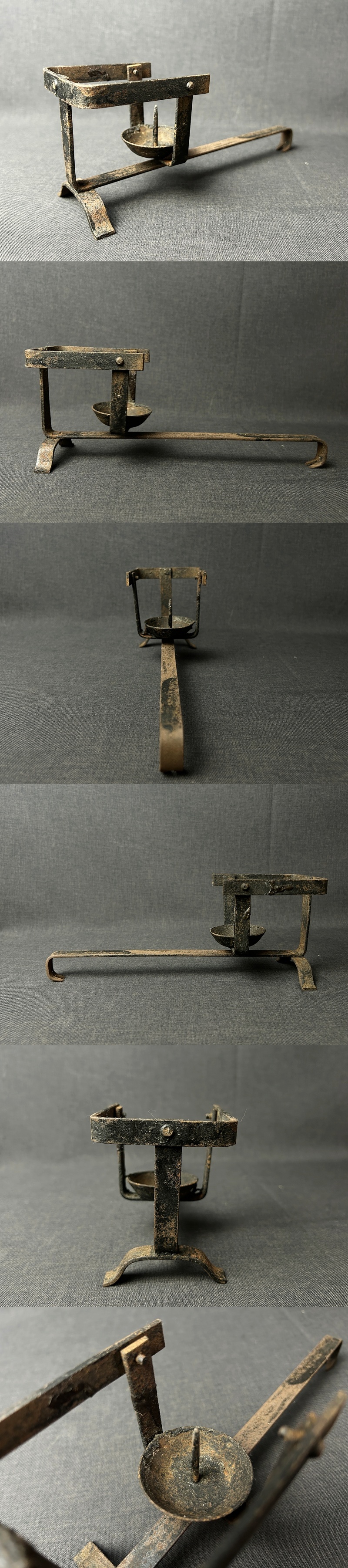 時代 自在式 燭台 和蝋燭立て 鉄製◇キャンドルホルダー/手燭/ローソクスタンド/縦置き/横置き/壁掛け/手持ち/骨董/古美術/古道具 收藏