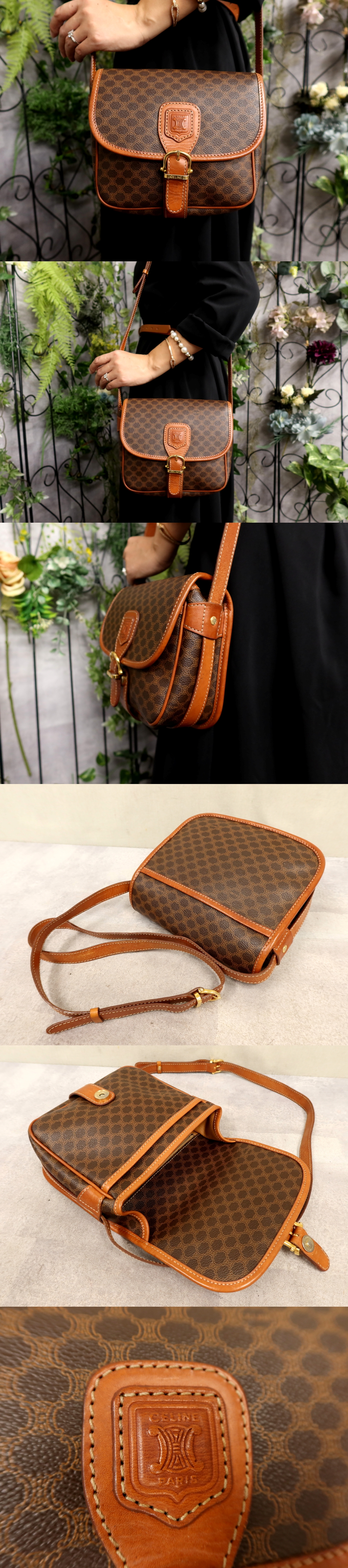 ●超美品●CELINE セリーヌ●マカダム●ロゴ型押し●PVC カーフ レザー 本革●ショルダー バッグ●ブラウン系●ゴールド金具●Js60937 收藏