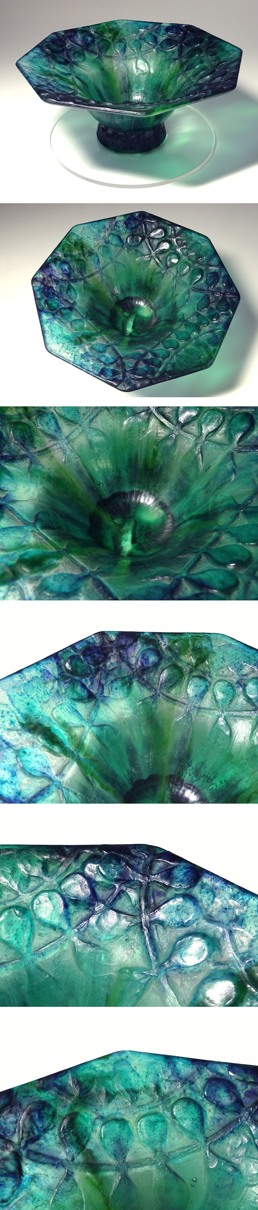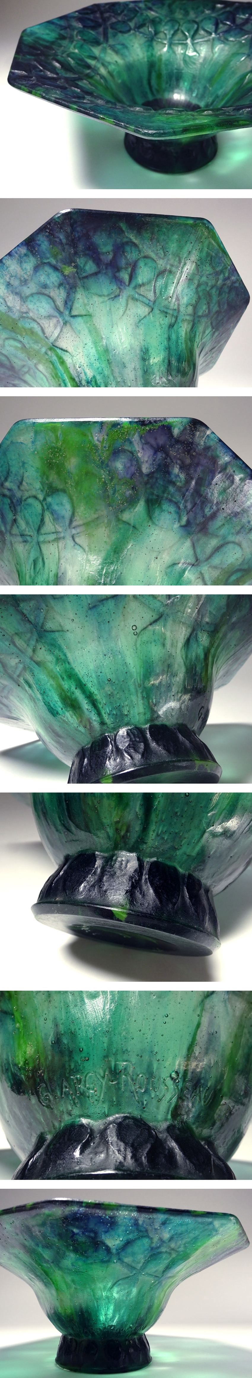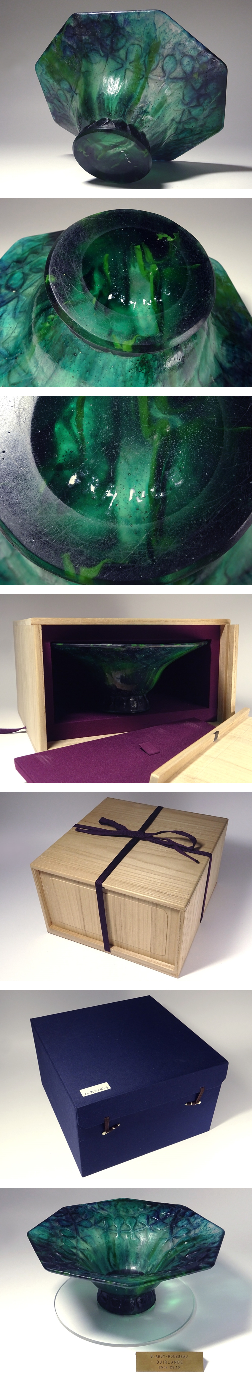 慶應◆1920年代 フランス【G・アルジー・ルソー(Gabriel A-Rousseau)】作 パート・ド・ヴェール鉢『Guirlande』ガラスコンポート 化粧箱入 收藏