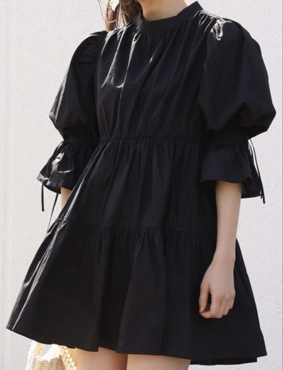 再↓秋★NICE CLAUPナイスクラップ★人気ティアードパフスリーブ七分袖リボンチュニックブラウス 新品 ブラック ミニワンピ 收藏