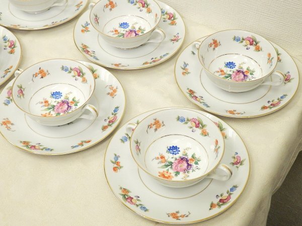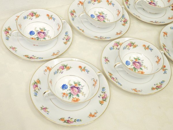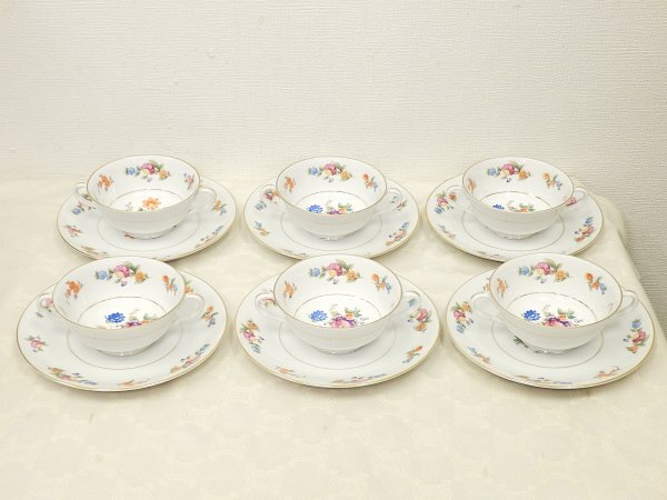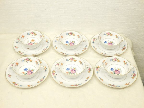 7527 希少☆ Noritake RC刻印 花柄 スープカップ & ソーサー 6客セット 皿 オールドノリタケ 則武 フラワー ヴィンテージ アンティーク 收藏