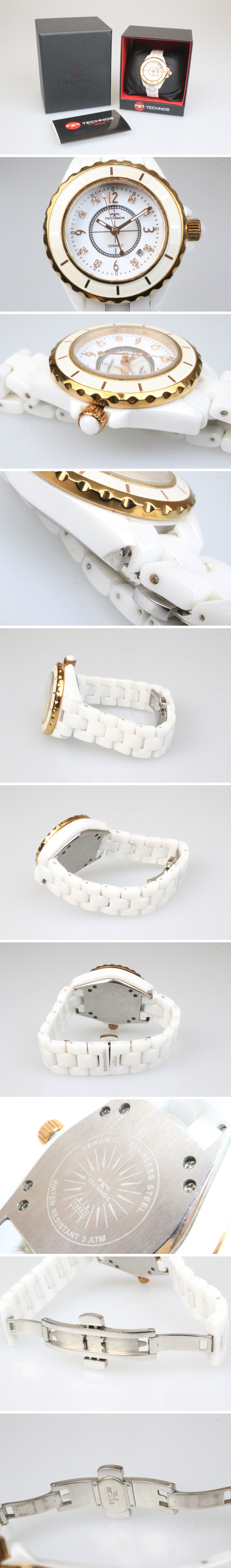 腕時計 テクノス TECHNOS T9882 CERAMIC セラミック ホワイト×ゴールドカラー クオーツ QZ レディース 箱付 7320kcz 收藏