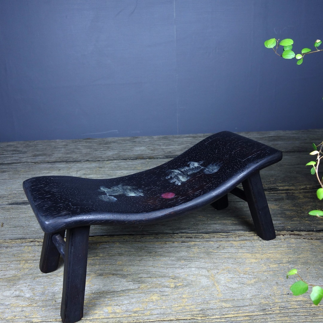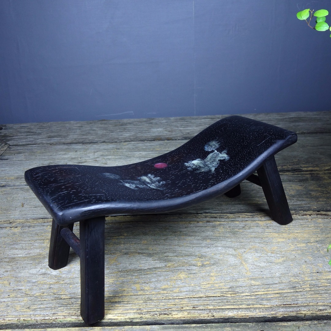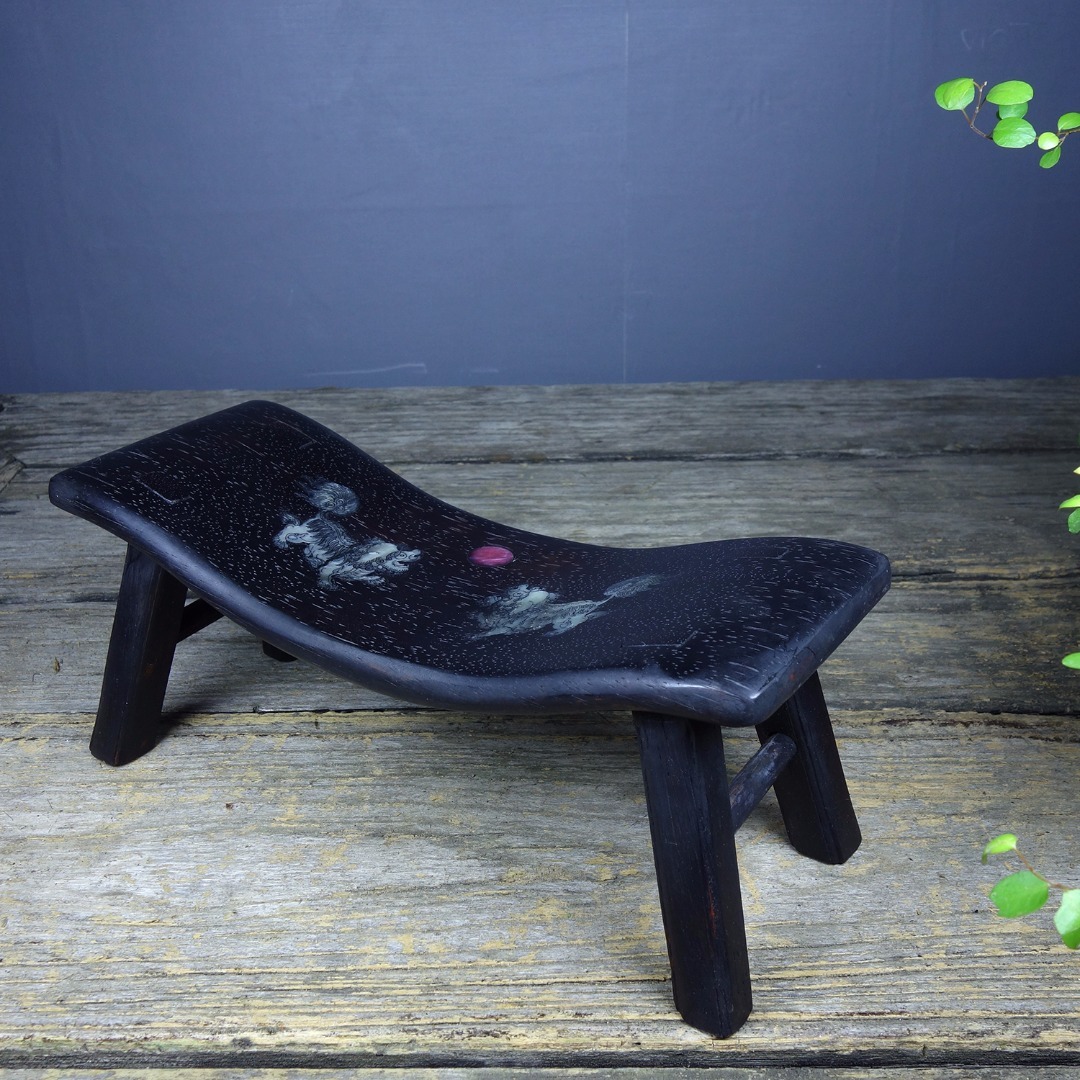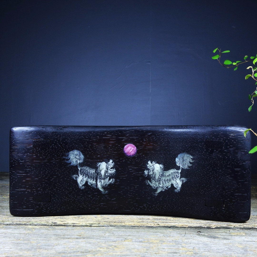 【仁】『紫檀木製・貝殼嵌・瑞獣觀日紋・枕頭・脈枕・置物・賞物』極細工 古董品 中国古玩 古美術 古美味 時代物 旧家蔵出 收藏
