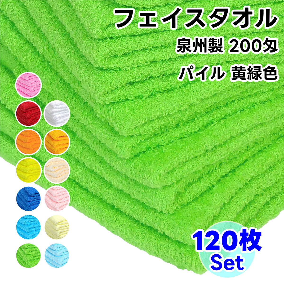 タオル フェイスタオル ソフトタオル 黄緑色 120枚セット 200匁 総パイル 日本製 まとめ買い 泉州製 薄手 綿100% 收藏