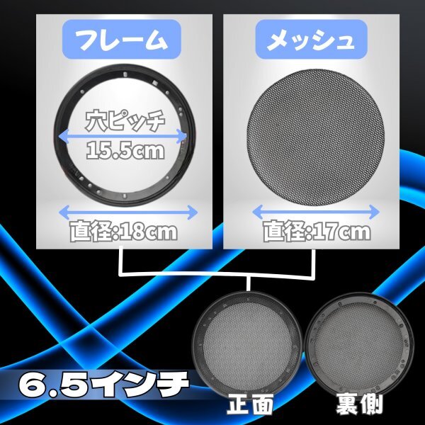6.5インチ 2枚セット スピーカー メッシュ ネット グリル カバー ウーファー オーディオ 汎用 取付 修理 交換 カスタム DIY