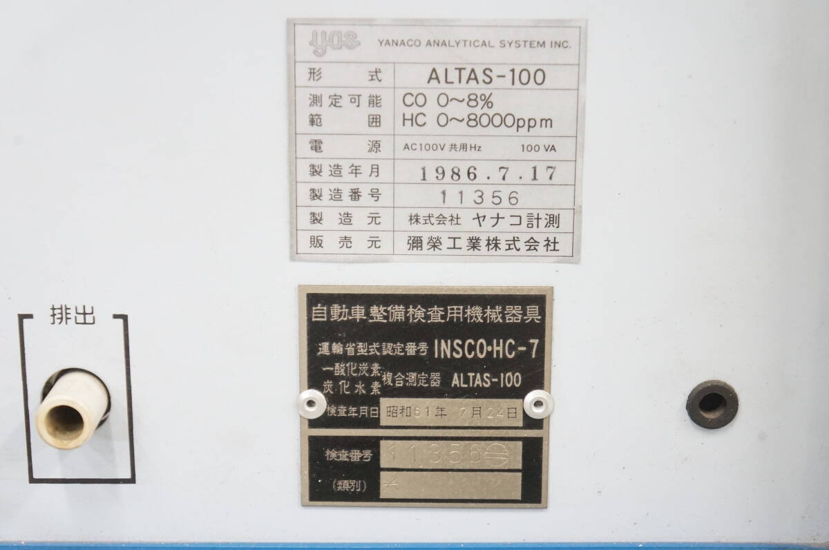 Iyasaka イヤサカ ALTAS-100 CO/HCアナライザー 排ガステスター 自動車整備 1110181411 收藏