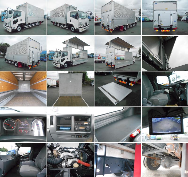 上物:日本フルハーフ製 上物同年式 ワイドボディ 荷台内寸:622×242×239 ラッシングレール2段 内フック 荷台床木張り 跳ね上げゲート付(無線ラジコン付 ゲート寸法:長158×幅231 ゲート昇降能力:1,000㎏ 積載2.5t ベッド付 カラーバックモニター ターボ車 排ガス規制適合車 中型限定(総重量8t未満)免許対応車 |