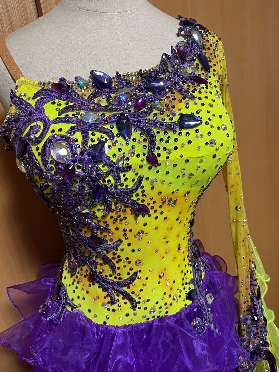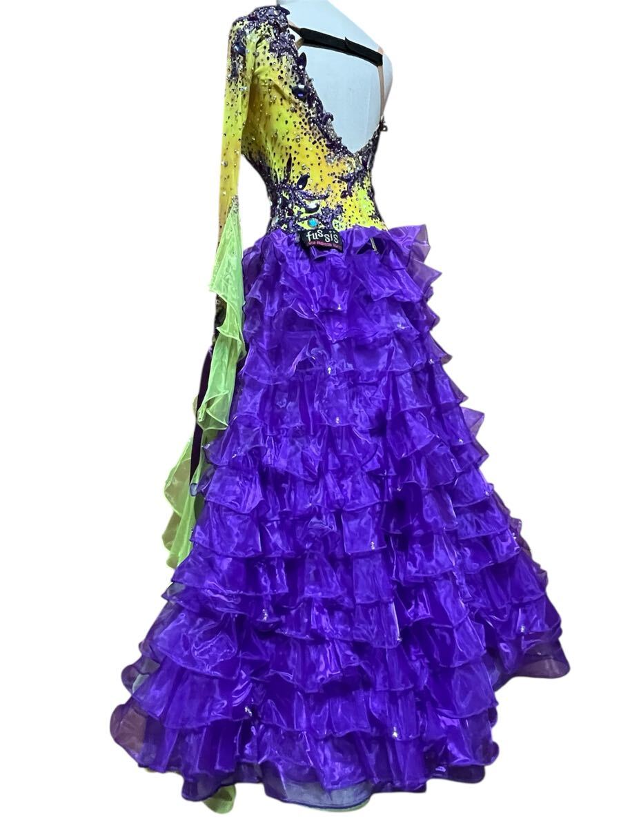 fussisボールルームドレス紫イエロー社交ダンスM 收藏