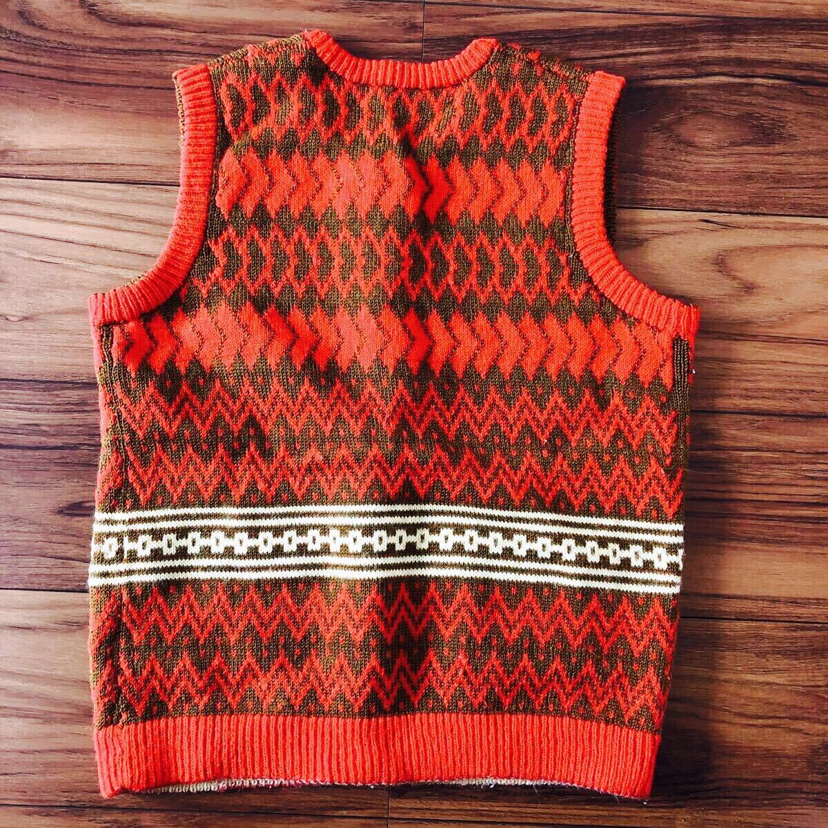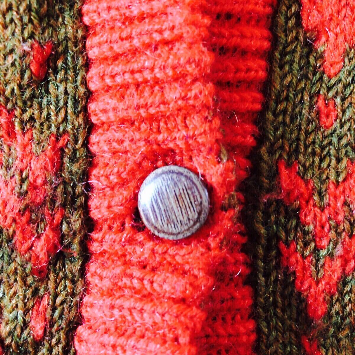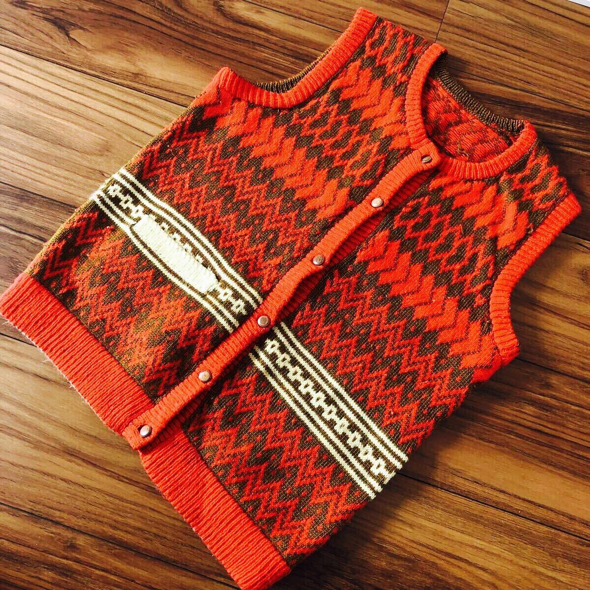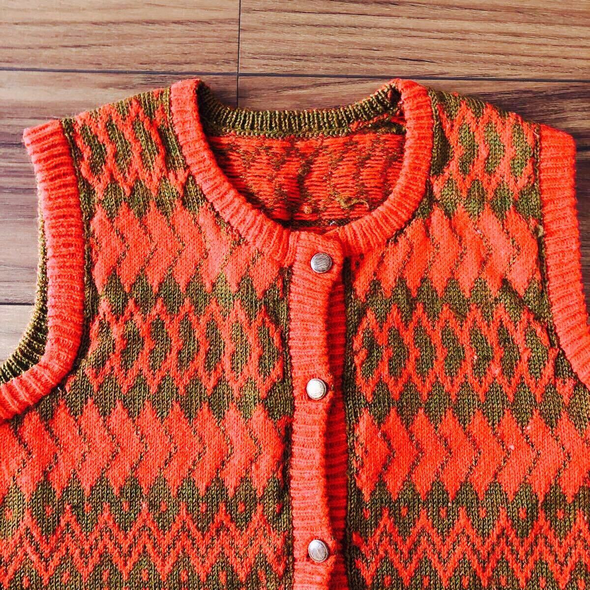 しっかり編み込まれた木のボタンレトロ柄ニット ベスト 天然生活、クウネル、北欧暮らしの道具店、古着、レトロポップ、東欧、北欧 收藏