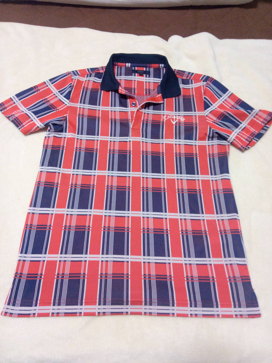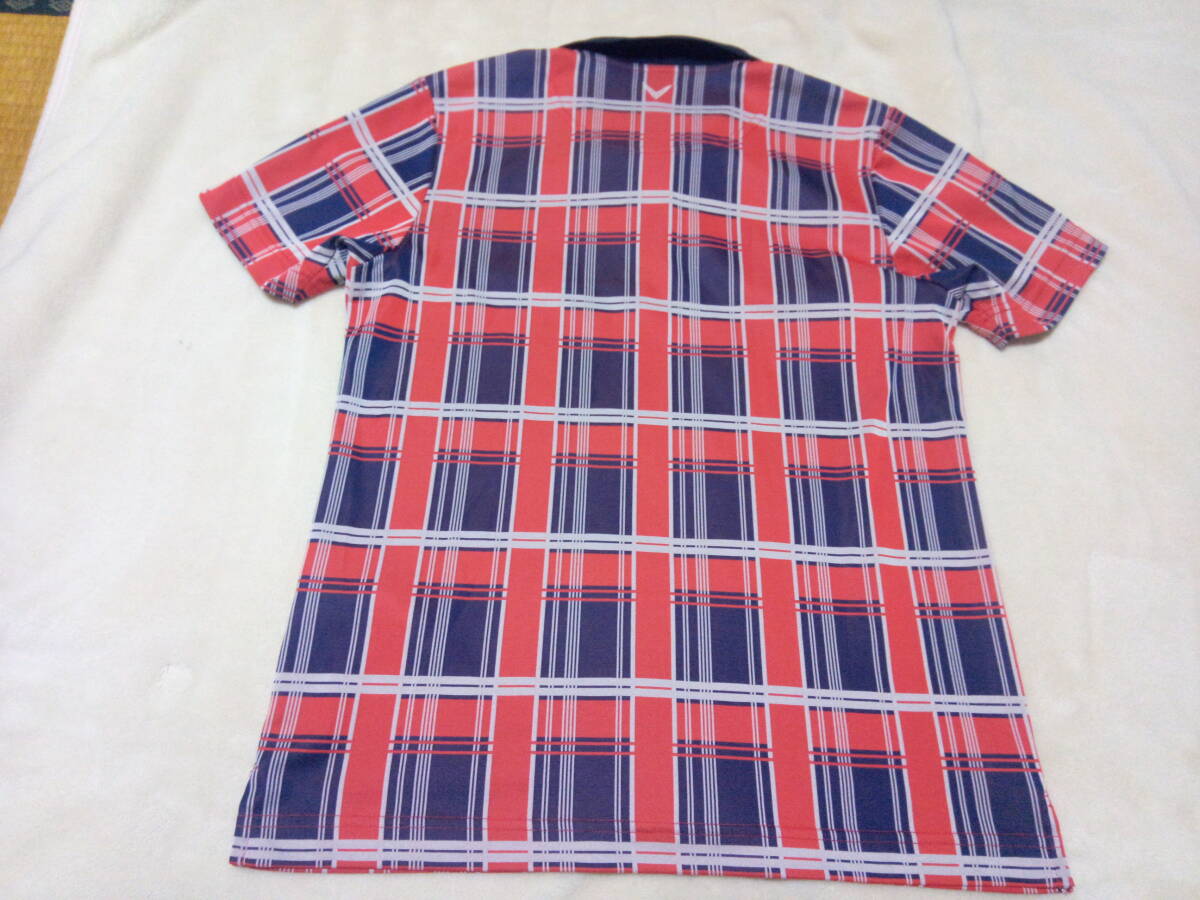 超美品 キャロウェイ チェック柄 ネイビーレッド ドライ素材ポロシャツ Lサイズ 收藏