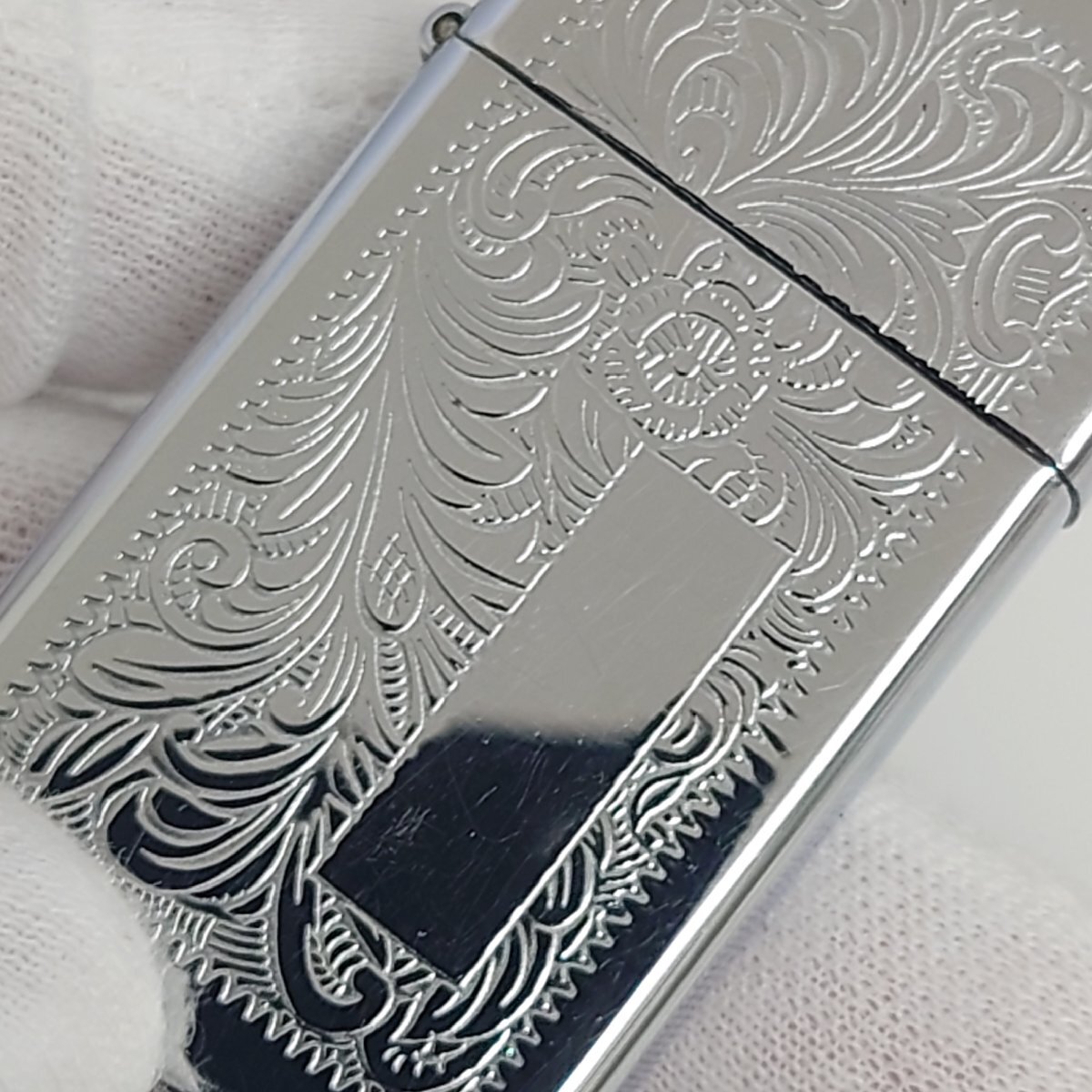 【86】希少 ZIPPO ジッポー 1993年 ベネチアン スリムタイプ 唐草 オイルライター 喫煙具 現状品中古品 火花のみ確認 收藏