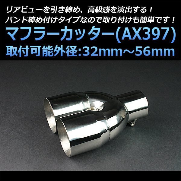 サビに強いステンレス製で丁寧に磨き上げた鏡面加工です。形状は、出口が約φ77mmの2本出しです。マフラーカッターの出口部分の最大取付幅は約160mmです。