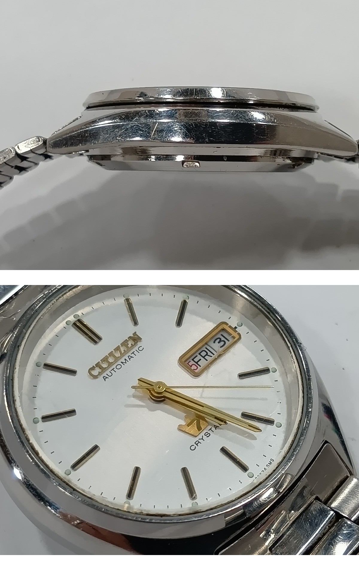 平1161 CITIZEN CRYSTAL シチズン クリスタル7 4-R00804RC メンズ腕時計 自動巻き デイデイト 白文字盤 收藏