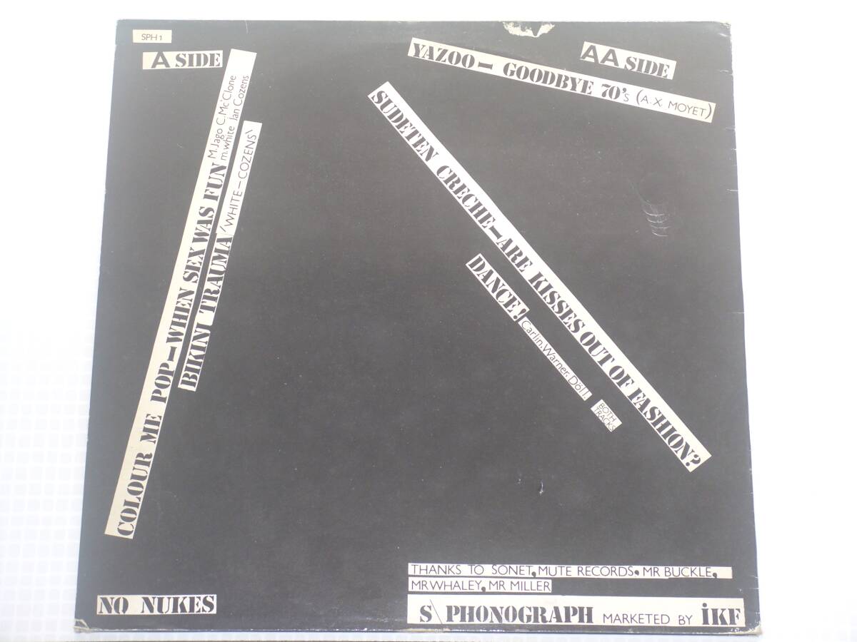 | 「Yazoo」「Sudeten Creche」「Colour Me Pop」のオムニバス12インチシングルです。 UK盤(1982年8月) 「Discogs」の参考ページはこちらをご覧ください。 ------------------------------------------------------ Yazoo / Sudeten Creche / Colour Me Pop - Europe In The Year Zero S/Phonograph SPH1 ------------------------------------------------------ A1.Colour Me Pop / When Sex Was Fun A2.Colour Me Pop / Bikini Trauma AA1.Yazoo / Goodbye 70's (A.X. MOYET) 1stアルバム別バージョン AA2.Sudeten Creche / Are Kisses Out Of Fashion? AA3.Sudeten Creche / Dance! ------------------------------------------------------ ■状態 ジャケットの表裏上部に若干の剥がれた箇所あり。 レコードの端に若干の反りあり。 (※GOODBYE 70'sの冒頭部分で動作環境次第では、針飛びの可能性があります。) 状態は全体的に微妙ですが、レアなレコードかと思います。 コレクターズアイテムとして如何でしょうか? | |