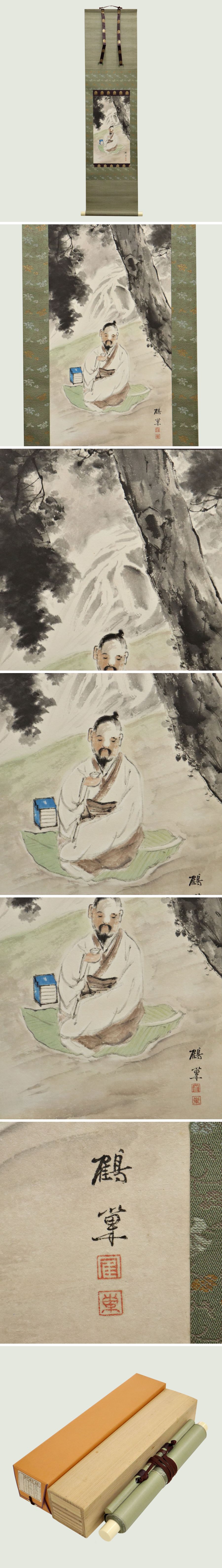 真作保証 森鶴巣 観瀧靜思図 紙本 箱 備後 掛軸 書画 骨董品 美術品 1454sbzN 收藏