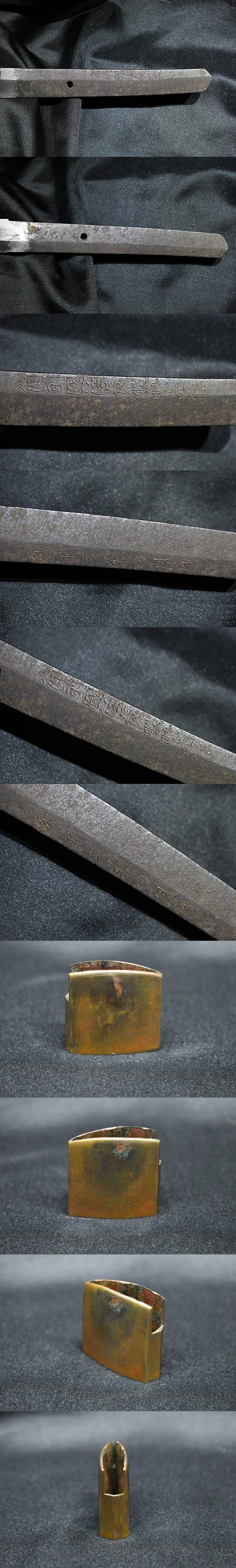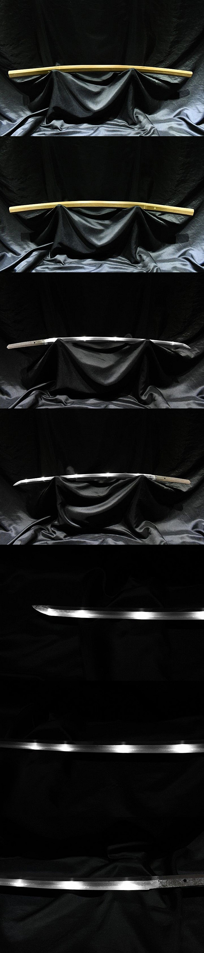 表【備前国住長船祐光】 裏【永正二年八月日】 種別:刀 サイズ:長さ66.4cm(二尺一寸九分六厘) 反り:1.9cm 目くぎ穴:1個 元幅:約 3.084cm 元重:約 0.826cm 先幅:約 2.120cm 先重:約 0.501cm 刀身重量:約 776.9g(ハバキ・柄をとった状態) ハバキ重量:約 33.9g 鞘全長:約 97.8cm 送料:2200円 |