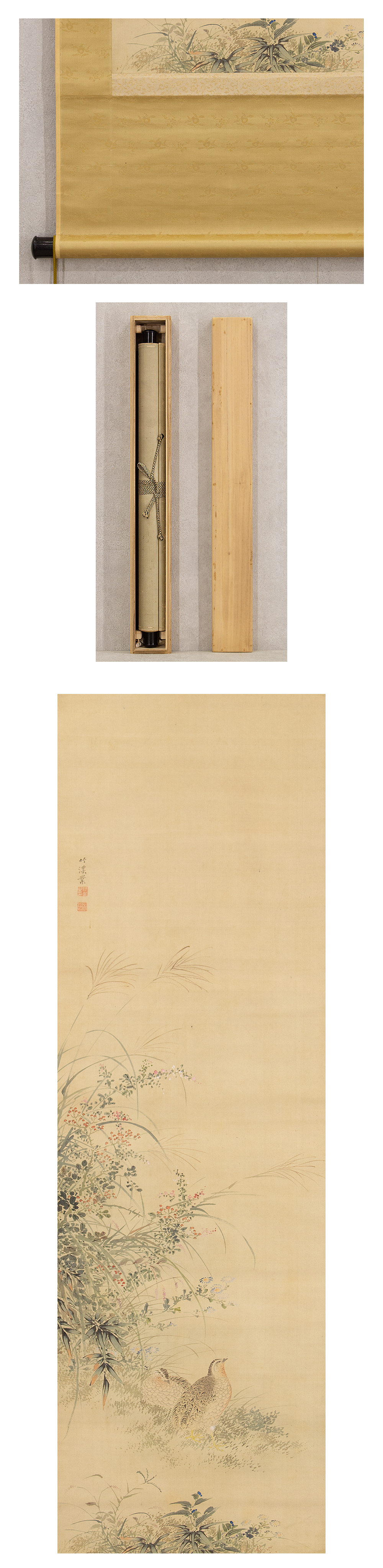 【模写】中林竹渓 秋草双鶉図 掛軸 合せ箱 中林竹洞の長男 山本梅逸に学ぶ 收藏