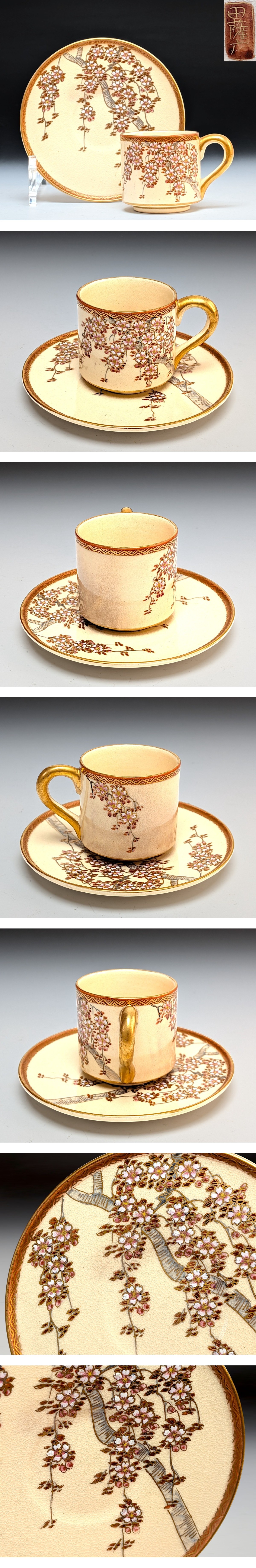 | オールドニッポン 京薩摩 金彩 枝垂桜図 竹菊図 カップ&ソーサー | ||||