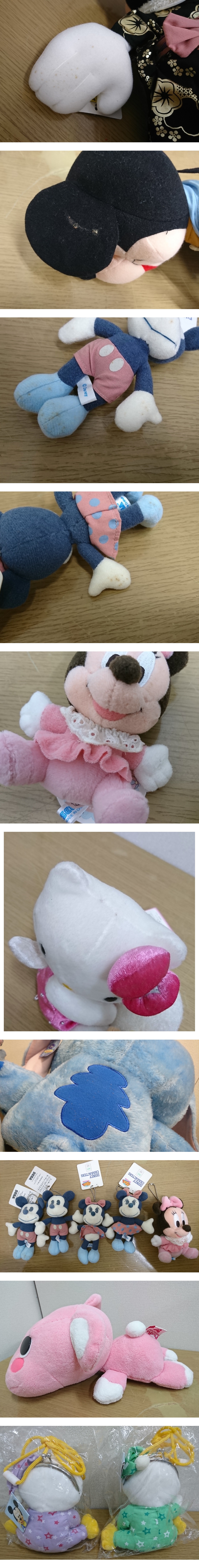 ミッキー、ミニーぬいぐるみに固着汚れやシミ汚れがあるものがございます。(写真参照)