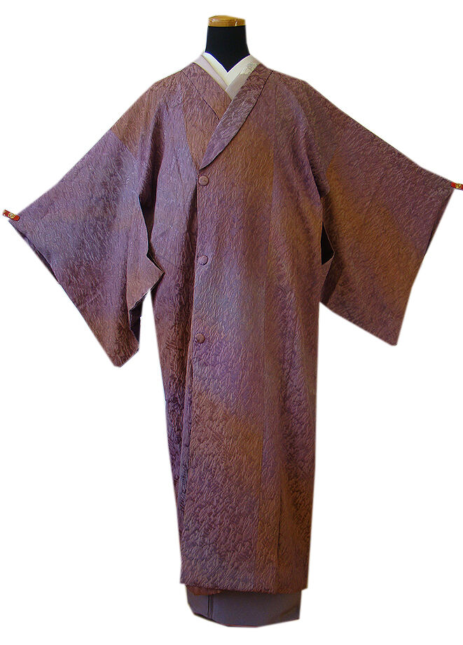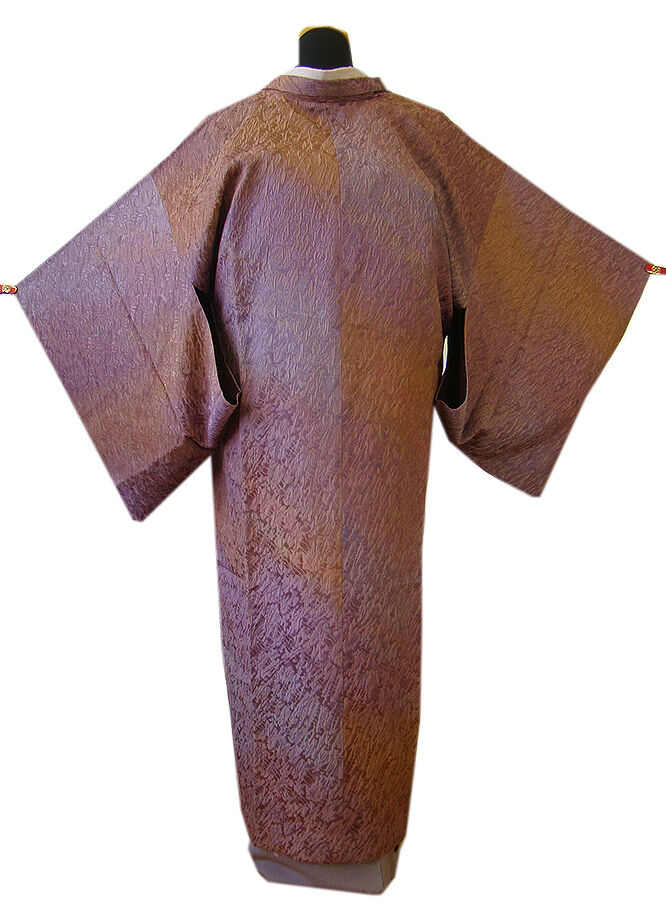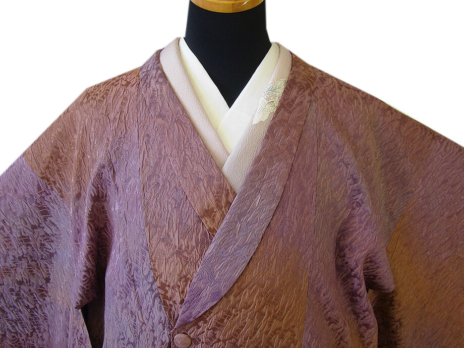 | 商品説明 | しなやかで柔らかなふっくらぽってりとした着心地良い重めのちりめん地のフクレ織の生地。 渋い葡萄鼠色や蘇芳香色等のぼかし。 裏地も正絹。 千代田衿。 |