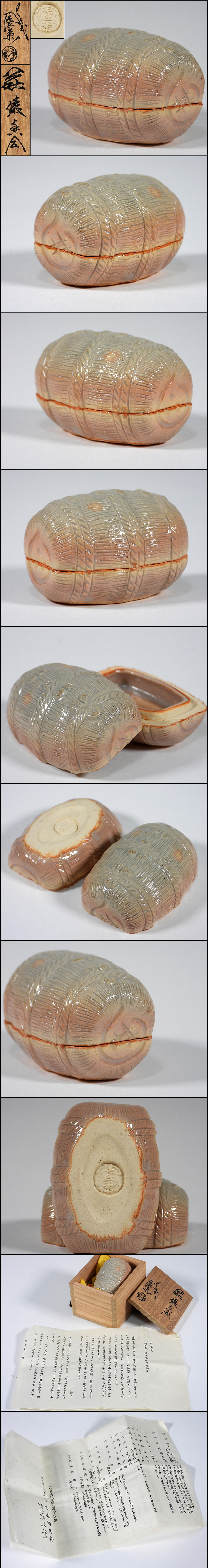 【騰立】萩焼 深川窯 十三代 田原陶兵衛 萩俵香合 共箱 茶道具 香道具■A861-17 收藏