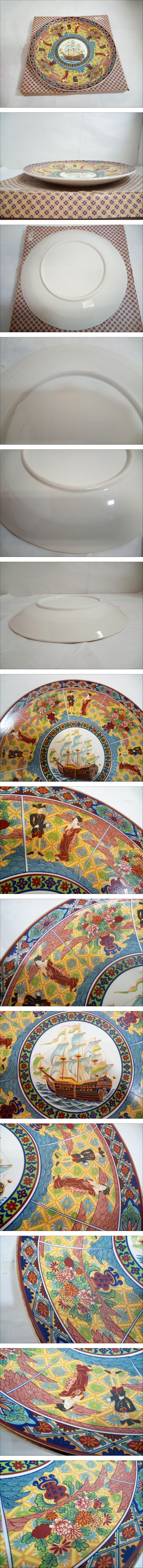 【うぶだし】金彩色絵 南蛮人南蛮船文 大皿/直径約41cm/高さ約10cm/重量約2.1kg/飾り皿/絵皿/床の間飾り/和食器/茶器/茶道具/12-RSB88 收藏