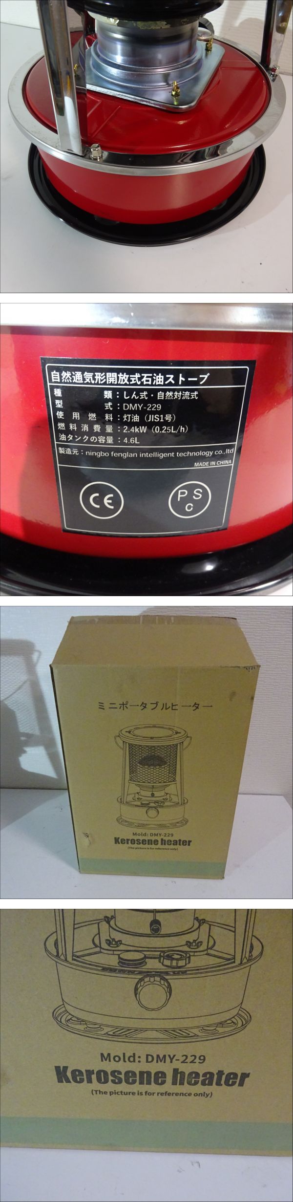 | 型番:DMY-229 カラー:レッド 火力調整:0.3L/H 燃料タンク容量:4.5L 製品:サイズ32*32*44cm 重量:3.6kg 持続時間:18-19h 適用場合:屋外使用専用、家庭用、オフィス 生産地:中国 点火して動作確認済み 付属品は画像にあるものが全てになります。 中古品になります、傷や煤汚れ等がありますので 掲載写真にて状態をご確認ください。 | ||