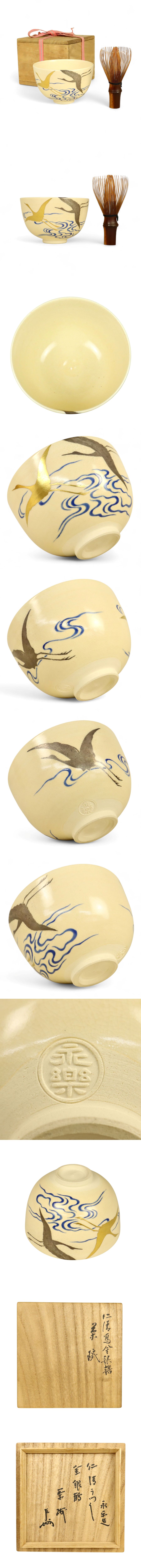 永楽善五郎造 表千家 即中斎書付 仁清写 茶碗 金銀鶴 書付箱 茶道具 煎茶道具 骨董品 美術品 1934udyN