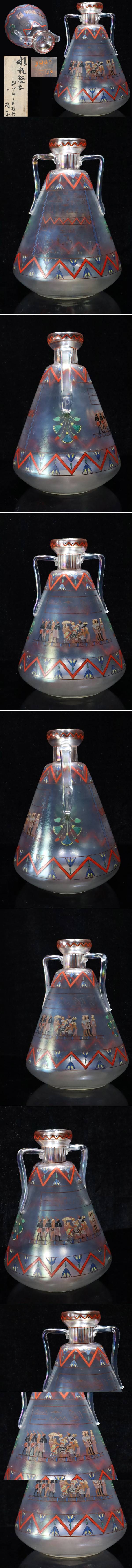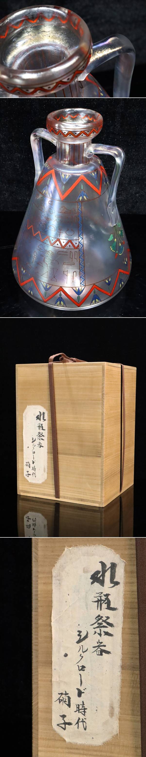 【ASAHI】時代 ガラス工芸 水瓶 色絵南蛮人図 水注 西洋アンティーク 置物 時代箱[7674ip] 收藏
