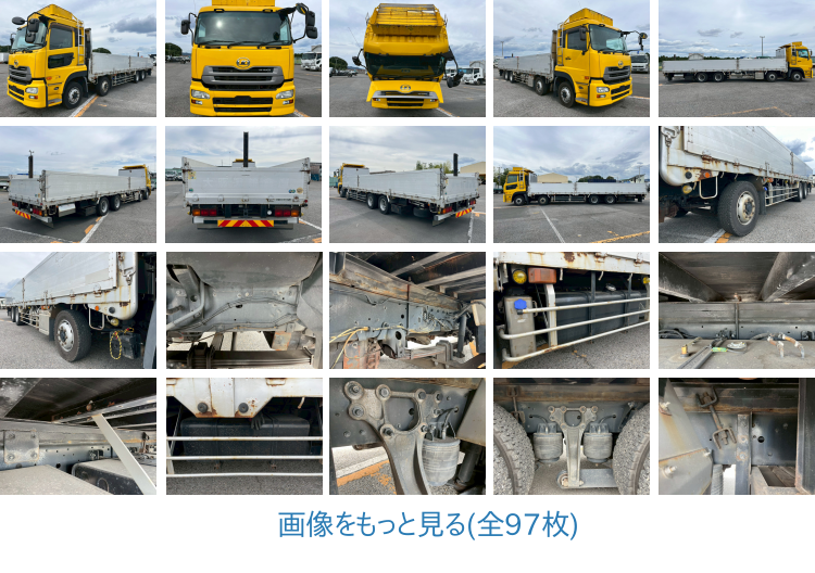 【諸費用コミ】:UDトラックスクオン4軸低床アルミブロック平ボデ9600ボデ2デフ5方開あおり後輪エアサスAT車整備記録簿有 收藏