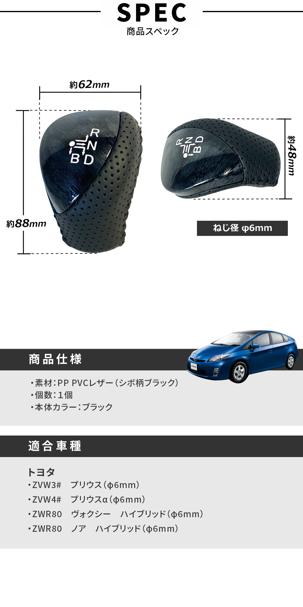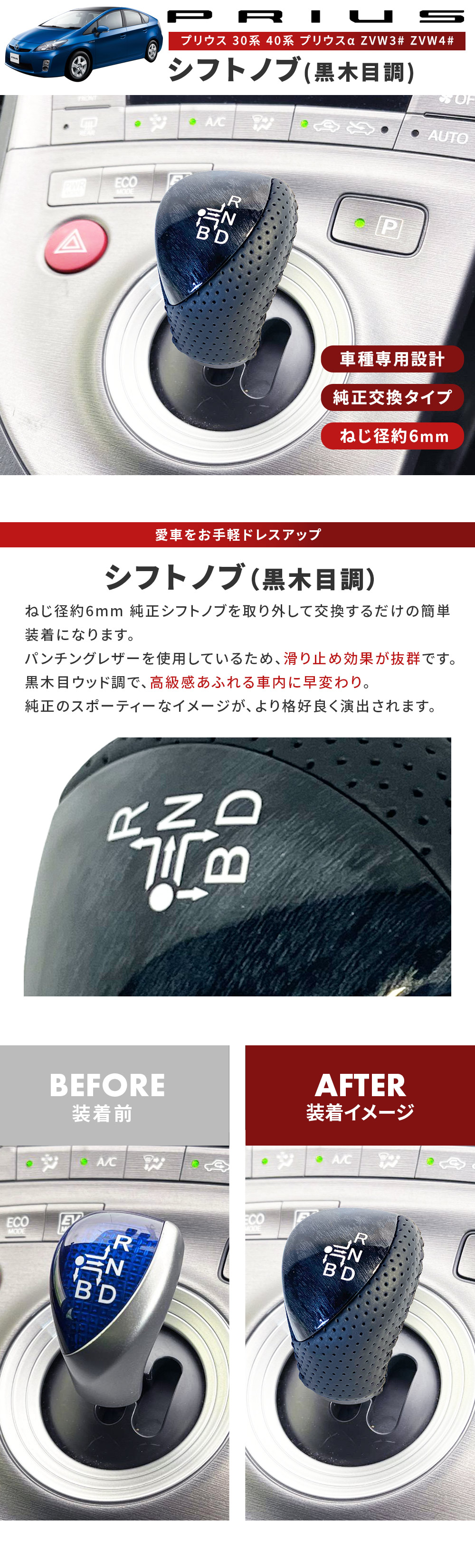 プリウス 30系 40系 プリウスα シフトノブ ( 黒木目調 ) パンチングレザー 純正交換 ZVW30系 ZVW41系 ZVW40系 6mm径 ねじ径約6mm 印字付き 收藏