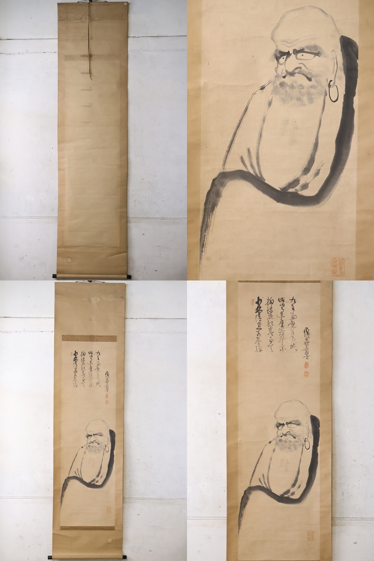 TB526だるま 書画 掛軸 紙本◇落款有/禅宗/達磨大師/禅語/漢文/墨蹟/茶掛/掛物/床飾/煎茶道具/工芸/時代/骨董/古美術/古道具タグボート 收藏